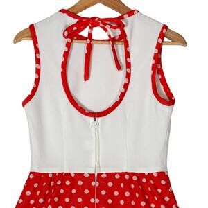 Vintage 70s Polka Dot Girly Retro Textured Tank Dress with Open Back from Great Shape in White & Red. Size Small to Medium-ish