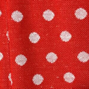 Back zip closure. Back cutout with tie at neck. Polka dot skirt with polka dot trim on top. So cute!