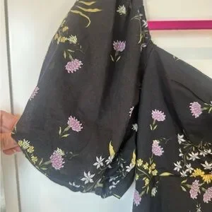 Elegant black dress with floral patterns, perfect for any occasion. Features a stylish design with a comfortable