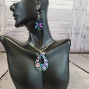 Iridescent Flower Earrings with Floral Teardrop Necklace Set