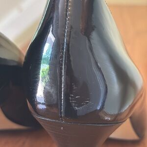 No sign of wear on heels or soles and two very small scuffs on patent leather (in photos)