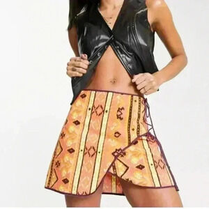 FREE PEOPLE Womens CLEO Aztec Printed Side Slit Wrap Mini Skirt Sz XS NWT Sample