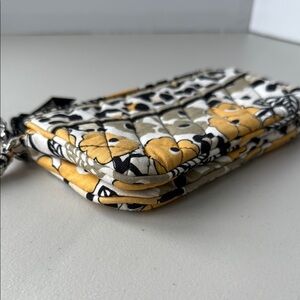 Stylish and functional, this Vera Bradley wristlet features a unique quilted design. The yellow floral pattern adds a touch of spring or summer to your outfit. Perfect for carrying essentials on the go.