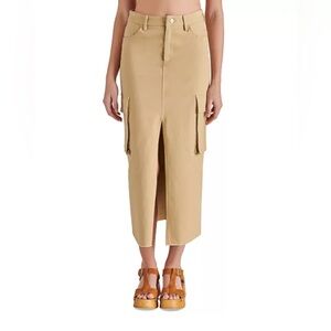 NWOT Steve Madden Tan Women's Maxi Cargo Skirt Khaki Front Slit Pockets M