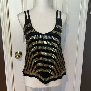 Ecote Sparkly Top with Double Spaghetti Straps and Gold Bars. XS