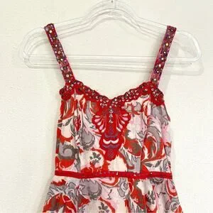 Chaudry KC Mini Sundress Embroidered Sequined Fully Lined Tiered Skirt - Small
