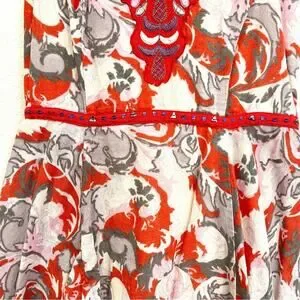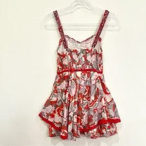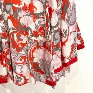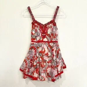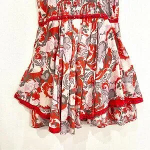 • Cute boho orangish red / pink / gray floral and paisley mix print sundress