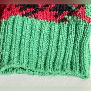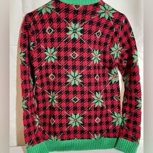 π± Red and green plaid knit design with snowflake accents for a classic holiday look.