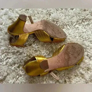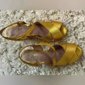 Miss L Fire Beatriz Gold Peep Toe Heels - Women’s