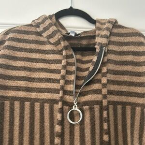 Stylish striped hoodie. Features a drawstring hood. Perfect for casual wear.