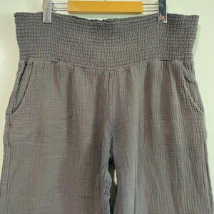 Step into comfort with these cozy grey capri pants by Miou Muse. Crafted from a breathable cotton blend, these pants feature a chic and practical textured design with an elastic waistband for a perfect fit. Size small, these capris are ideal for relaxed days or casual outings.