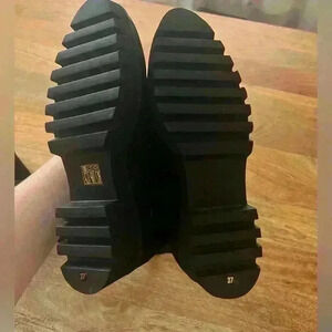 Theory Black Faux Suede Over-the-Knee Boots Lug Sole | 37