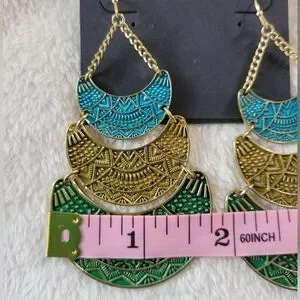 •Features: Gold tone metal hardware, Hook backs, Large 3 layered crescent moon discs