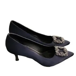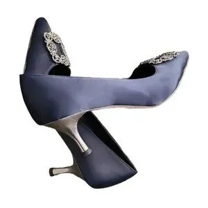Uppers are a midnight dark navy blue satin.