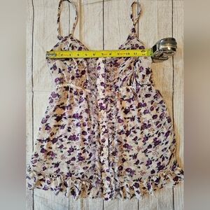 Express Size Medium Babydoll Tank Top Floral Boho Smocked Flowy Y2K Fairy Whimsy style. Adjustable straps. In Pre-owned condition. Please see the measurements in photos provided. Cross posted. I ship out same or next day. Thanks for looking!