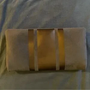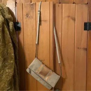 Neiman Marcus Convertible Clutch Tan Shoulder Bag Gold Foil Accent