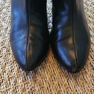 Vintage Kickerinos Black Leather Kitten Heeled Boots with Brown Fur Trim Size 7