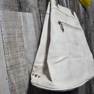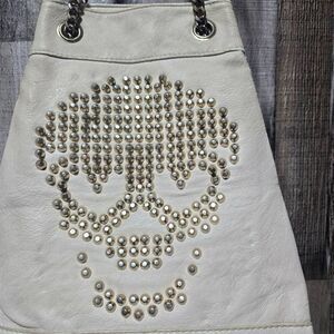Symeli Cream Gold Studded Skull Faux Leather Goth Punk Emo Bag Purse