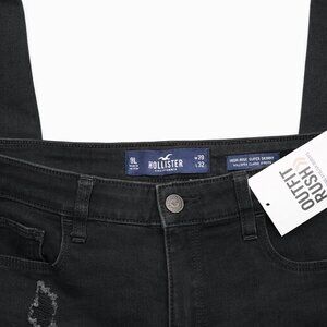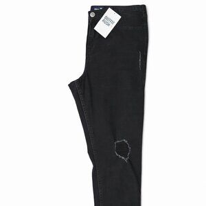 Women’s Hollister skinny jeans in a classic black denim wash featuring intentional distressed details. Slim, flattering fit with a modern, edgy look.