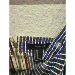 Forever 21 Denim crop top with sunshine. Size Medium. White stripe denim. Farm Rio vibes.Vibes. zipper back.