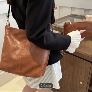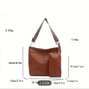 Unbranded 2pcs Large Capacity Brown Bohemian Style Tote Bag and Wristlet. Stylish brown women's bag set featuring a unique patterned strap. Perfect for everyday use. NIP