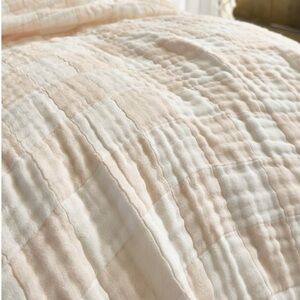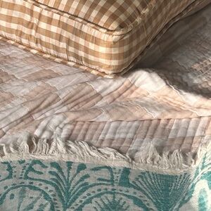 Soft checkered Queen coverlet blanket in cream and tan. Adult Size