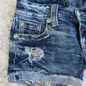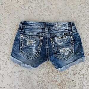 Miss Me Shorts Size 25 Womens Embellished Rhinestone Short Sequins Low Rise Blue
