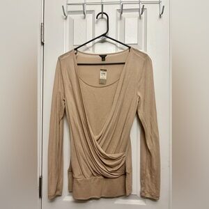 Ann Taylor Beige Drape Front Blouse | Long Sleeve Work Top | NWT