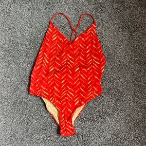 🌞👙NWT Dolce Vita T-Back One Piece Chevron Print Swimsuit in Orange and Gold, M