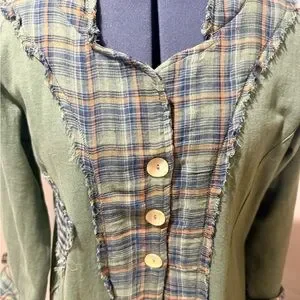 Stylish green plaid women's jacket with a unique design. Perfect for dressing up or down..Cute details on front and back!
