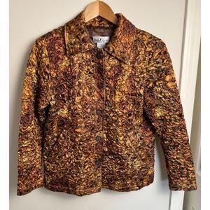 Vintage Once Again Blazer Womens M textured Quilted Tapestry Gold Brown Button