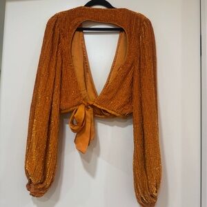 Retrofete Viva Long Sleeve Top Sequins In Orange Size Small $498 Revolve