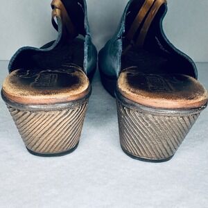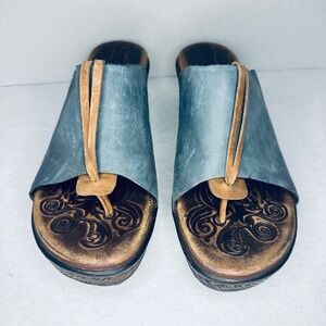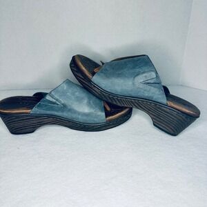 BORN Womens Blue Leather Hanita Wedge Sandals Slide Mules Comfort Shoes Sz 8 39
