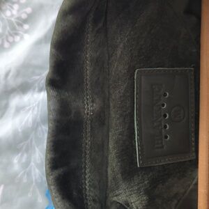 Great pre-loved jacket. has a spot on the back Little bit of wear at the neck and scrapes on the buckle as shown in photos. color is a dark Olive green.