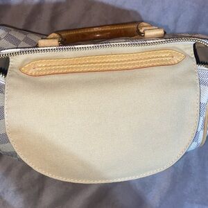 This reference is either Made in France, Spain, Italy or in the US. Stylish Louis Vuitton satchel with iconic checkered pattern. Features elegant leather handles. Perfect for any occasion.