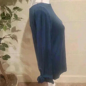 This Banana Republic blouse is a must-have for any fashion-forward woman. The blue color and bohemian theme make it perfect for any occasion, from travel to parties or casual outings. The blouse features a boat neck and long sleeves with bow accents, adding a touch of elegance to the overall look.
