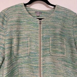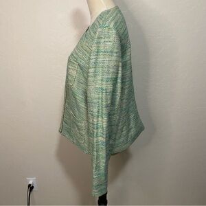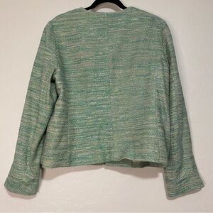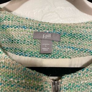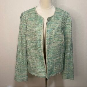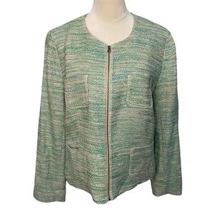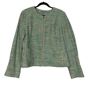 J. Jill Green Tweed Long Sleeve Stretch Linen Blend Zip Up Blazer Jacket Size L
