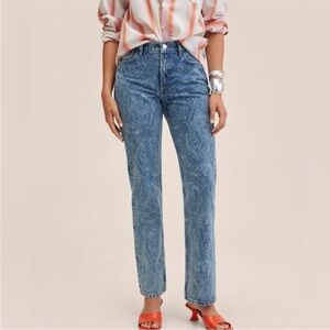 NWT MANGO Medium Blue Paisley Mid-rise straight leg jeans 1 MNG sustainable