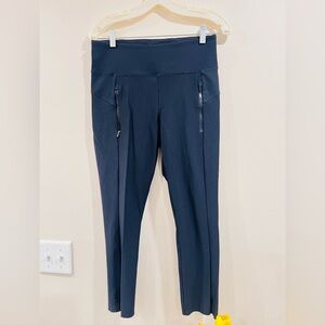 Sleek black high-waisted leggings featuring zipper pockets. Perfect for workouts or casual wear. Excellent condition