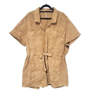 #Free People #Romper #Utility #Chic #Distressed #Gold #Cotton #Linen #Casual #Summer #Spring #One-piece #Collared #Drawstring #Relaxed #Boho #Short-sleeved