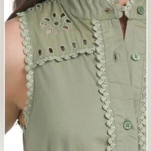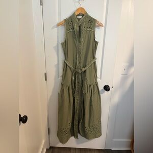 AVEC LES FILLES Eyelet Embroidery Sleeveless Maxi Dress Olive Green Size Small
