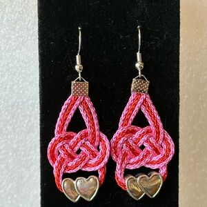 Handmade Pink Heart Knot Earrings