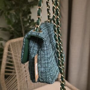 Chic Tweed Shoulder Bag - Teal