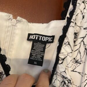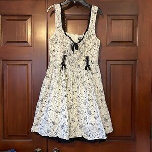 Lace trim on the neckline and the shoulders and the the front of the bodice