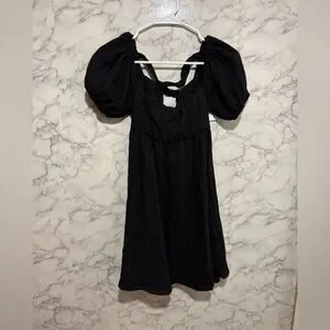 Princess Polly Black Puff Sleeve Mini Sundress Size 2