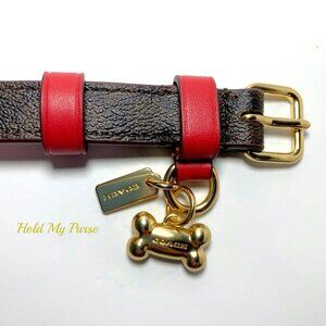 Coach Small Dog Collar Brown Red Signature C Includes an Apple AirTag Tracker