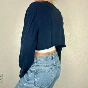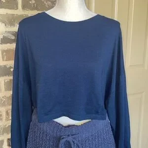 Double Zero Indigo Blue Cropped Top Dolman Sleeve Oversized Size Spicy Small