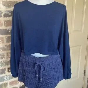 NWOT Double Zero Indigo Blue Cropped Top Size Spicy Small. Banded Cuffs. ultra-soft, and smooth feeling, with stretchy active-material. Only worn once. Brand new condition. Shorts also for sale.