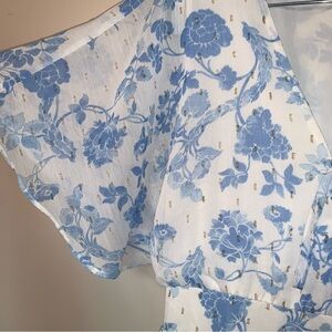 House of Harlow 1960 Blue and White Flutter Sleeve Maxi Dress M