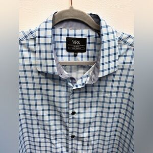 WRK Wrinkle Free Men's Blue Checkered Button Up Shirt sz 17.5